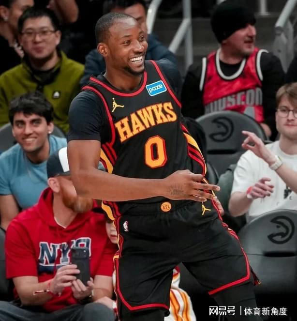 全場24分鐘轟下27分7板4助2斷,75%的命中率亮瞎眼!更絕的是,這孩子從第一球開始就咧著大白牙傻笑,活像中了彩票的二哈勇士那會兒,庫明加最高分才25分,還"你們逼我上班"的苦瓜臉。如今在老鷹,這笑容比亞特蘭大的陽光還燦爛,連場邊賣熱狗的大叔都打趣:"這小子怕不是把快樂基因注射到籃球里了!"