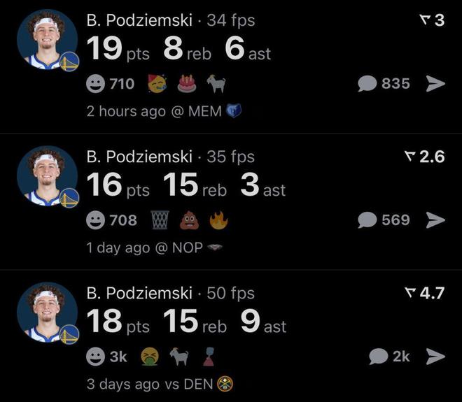 此前因表現(xiàn)不佳丟掉首發(fā)位置的波杰,本場因人手不足重新回到首發(fā)陣容中,他強勢完成自我證明,成為勇士隊官方賽后認可的本場最佳球員。