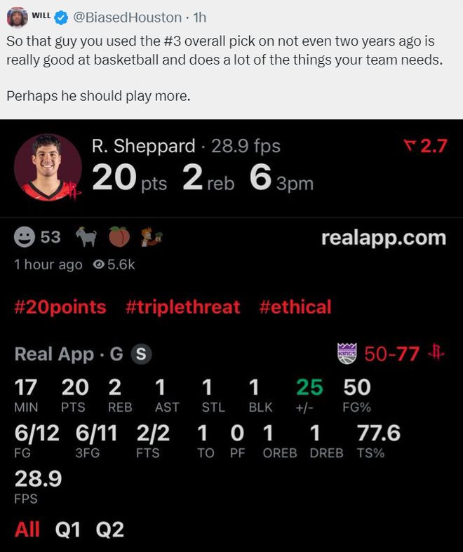 這場比賽里德-謝潑德的發(fā)揮很好尤其是上半場,他首節(jié)三分4中2拿到8分1籃板1助攻1蓋帽,次節(jié)三分7中4拿到12分1籃板1搶斷,整個(gè)上半場他就已經(jīng)命中6個(gè)三分球拿到20分。